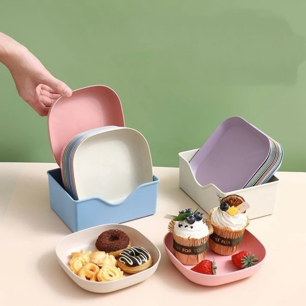 Otimize a organização e promova a sustentabilidade em sua rotina! Este kit é a solução perfeita para uso diário, festas, escolas ou ambientes coletivos, oferecendo 10 pratos duráveis e um escorredor prático para secagem rápida.