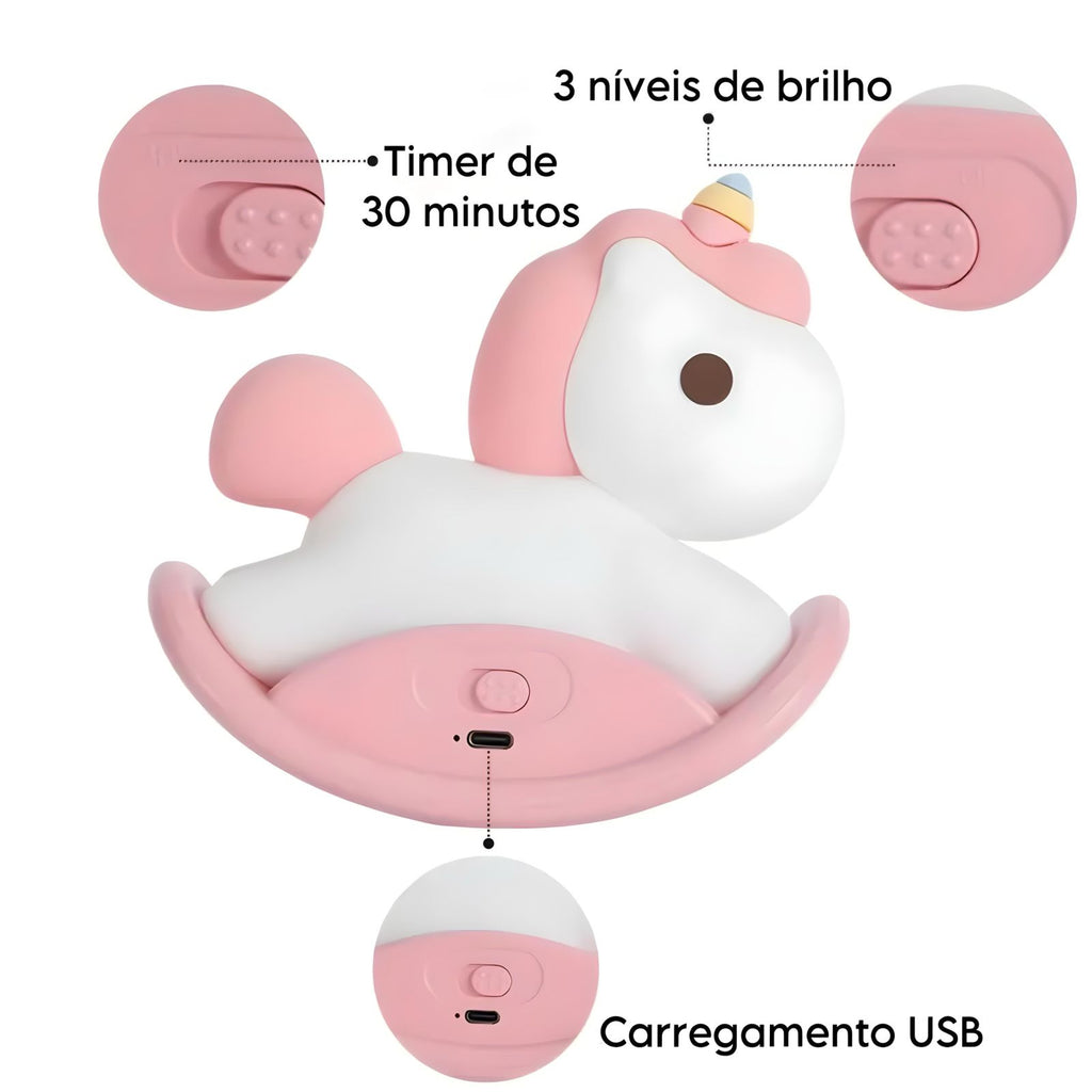 Luminária Touch Unicórnio LED em Silicone - Sono Mágico e Aconchegante!